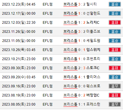 홈에서 3연승이 없는 브리스톨  정도