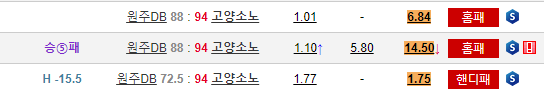 Dongbu Promy WIN -15.5 총 배당 : 1.90